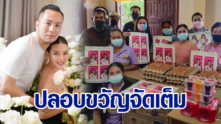 ล่าสุดเพจ 'เจ๊มอย 108' โพสต์ภาพกลุ่มชาวบ้านหลายสิบคน ช่วยกันรับของซึ่งเป็นข้าวสาร-อาหารแห้ง-น้ำดื่ม จำนวนมาก ที่มาพร้อมรูปโปสการ์ดของสาวดิว ซึ่งทางเพจระบุว่า
