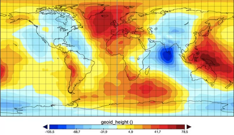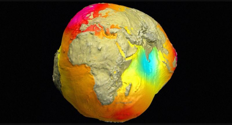 แผนที่ “จีออยด์” (Geoid) หรือรูปทรงสัณฐานของโลกที่วัดจากระดับน้ำทะเลปานกลาง ได้แสดงให้เห็นค่าความแปรปรวนของสนามความโน้มถ่วงโลกในภูมิภาคต่าง ๆ ซึ่งบริเวณที่เรียกว่า “จุดจีออยด์ต่ำในมหาสมุทรอินเดีย” (Indian Ocean Geoid Low – IOGL) มีค่าแรงโน้มถ่วงที่มากระทำต่ำมาก เสมือนกับเป็นแอ่งหรือหลุมลึกในสนามความโน้มถ่วงโลก โดยมีค่าความสูงจีออยด์ (Geoid heights) ต่ำกว่าที่ระดับน้ำทะเลปานกลางถึงกว่า 100 เมตร