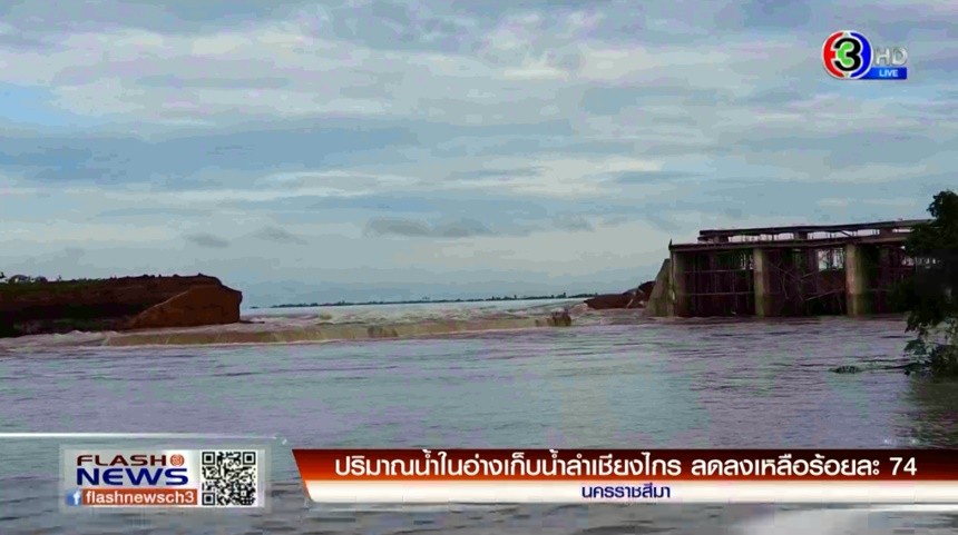 ปริมาณน้ำในอ่างเก็บน้ำลำเชียงไกร ดอนล่าง ลดลงจาก 45 ล้านลูกบาศก์เมตร เหลือ 20 ล้านลูกบาศก์เมตร หรือคิดเป็นร้อยละ 74 ของความจุอ่างฯ หลังมวลน้ำจำนวนมาก ถูกระบายออกจากอ่างฯ บริเวณคนดินที่ชำรุด / ขณะที่กรมชลประทาน ติดตั้งเครื่องผลักดันน้ำในลำเชียงไกร ให้ไหลลงสู่แม่น้ำมูลได้เร็วขึ้น หากไม่มีฝนดกลงมาเพิ่ม ไม่เกิน 2 สัปดาห์ สถานการณ์จะเข้าสู่ภาวะปกติ