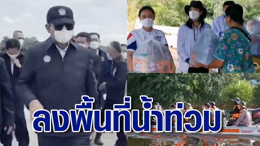 นายกฯ-ธรรมนัส-ส.ส.เพื่อไทย ลงพื้นที่ลุยช่วยน้ำท่วม ให้กำลังใจชาวบ้าน