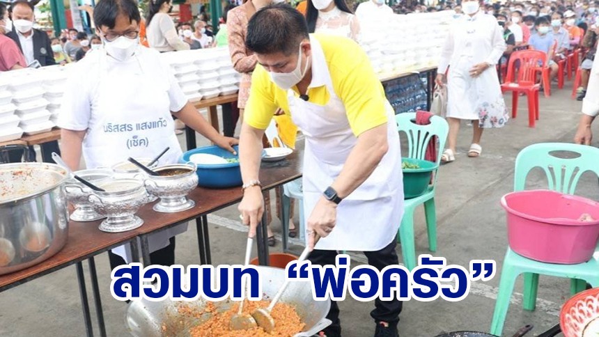 “ธรรมนัส” สวมบท “พ่อครัว” ทำอาหารแจกชุมชนแออัดบางเขน