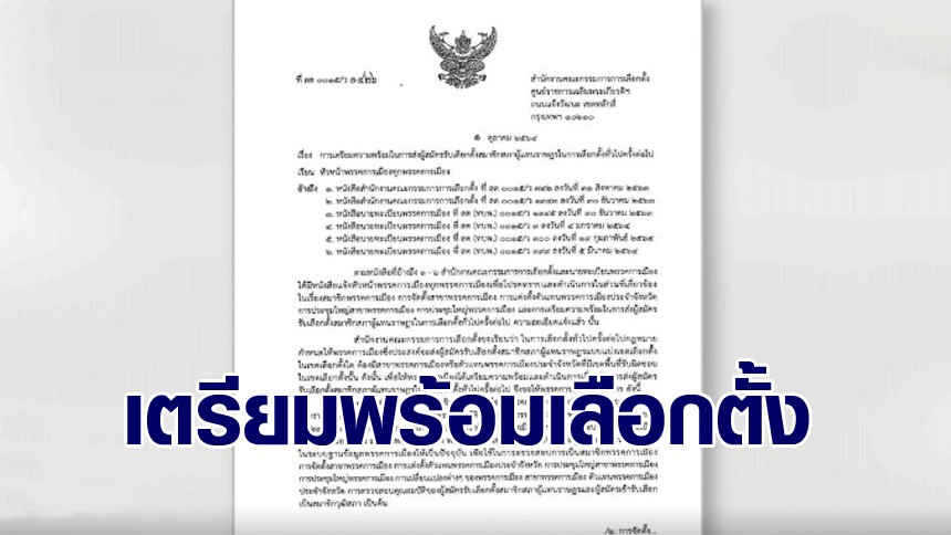 กกต. ส่งสัญญาณ แจ้งทุกพรรคการเมือง เตรียมพร้อมเลือกตั้ง ส.ส. ให้ดำเนินการสรรหาผู้สมัครไว้ก่อนล่วงหน้าได้