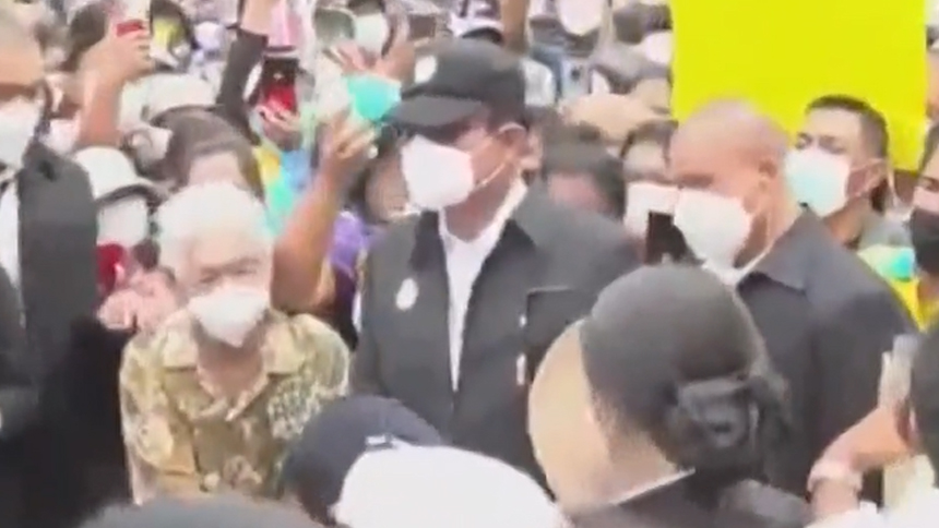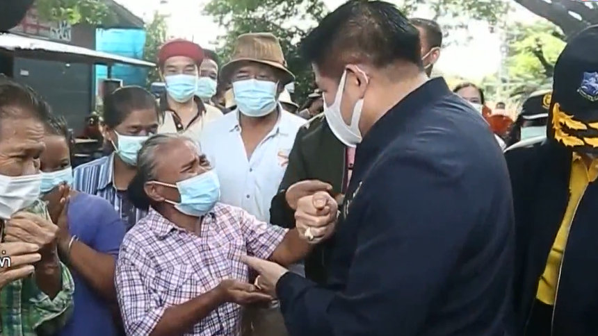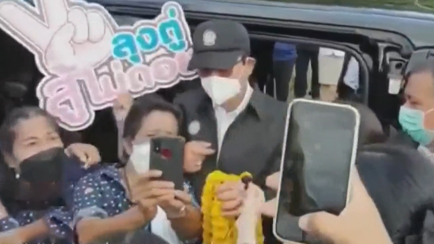 จากนั้นนายกรัฐมนตรี ได้พบปะกับประชาชนที่มารอต้อนรับบริเวณด้านหน้า และรับมอบ สิ่งของจากประชาชน โดยประชาชนขอให้นายกรัฐมนตรีนั้นสู้ๆ ห้ามแพ้