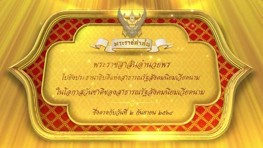 ในหลวง โปรดเกล้าฯ ให้ส่งพระราชสาส์นอำนวยพร ในโอกาสวันชาติเวียดนาม