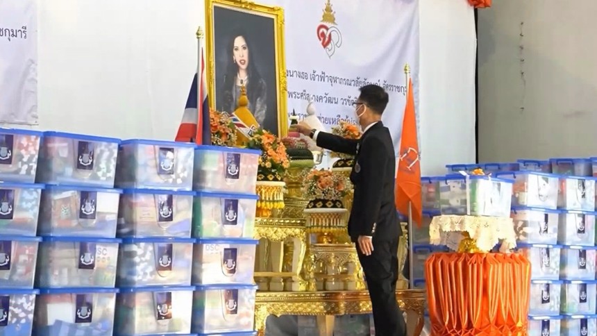 รองประธานสถาบันวิจัยจุฬาภรณ์ เชิญสิ่งของพระราชทาน มอบแก่ผู้ประสบอุทกภัย ใน จ.ตาก