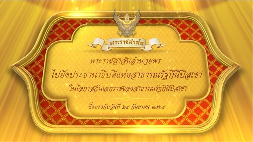 วันนี้ พระบาทสมเด็จพระเจ้าอยู่หัว ทรงพระกรุณาโปรดเกล้าโปรดกระหม่อม ให้ส่งข้อความพระราชสาส์น อำนวยพรไปยังประธานาธิบดีแห่งสาธารณรัฐกินีบิสเซา ในโอกาสวันเอกราชของสาธารณรัฐกินีบิสเซา ซึ่งตรงกับวันที่ 24 กันยายน 2564 ความว่า