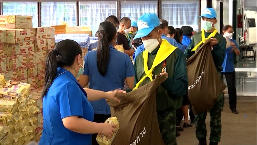 มูลนิธิราชประชานุเคราะห์ฯ บรรจุถุงสิ่งของพระราชทาน ช่วยเหลือปชช.ที่เดือดร้อนจากน้ำท่วม