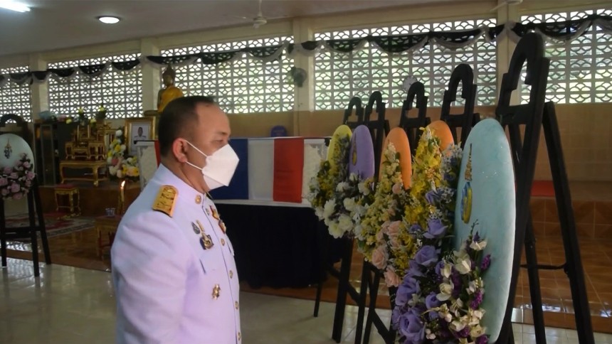 ในหลวง พระราชทานพวงมาลาวางหน้าหีบศพกำลังพล เสียชีวิตจากการปฏิบัติหน้าที่