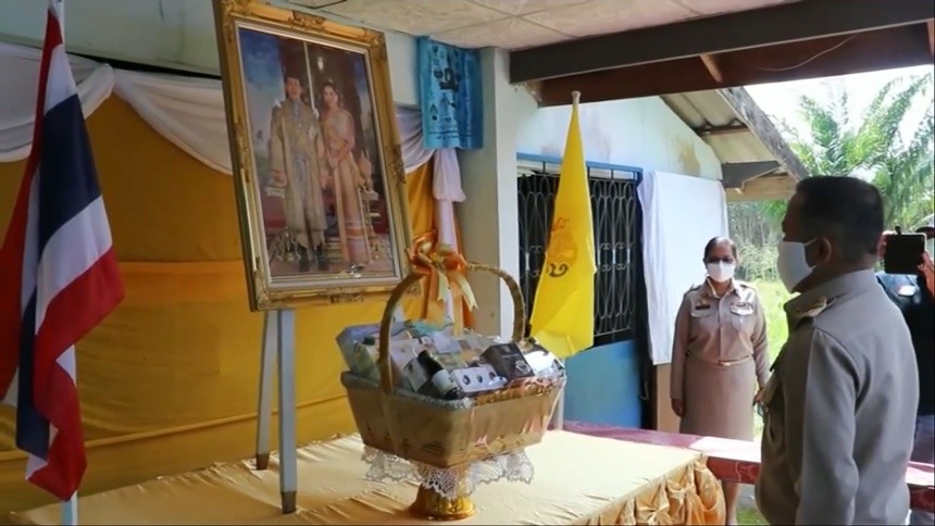 วันนี้ ที่บ้านเลขที่ 223 หมู่ที่ 9 ตำบลโคกทราย อำเภอป่าบอน จังหวัดพัทลุง พระบาทสมเด็จพระเจ้าอยู่หัว ทรงพระกรุณาโปรดเกล้าโปรดกระหม่อมให้ นายกู้เกียรติ วงศ์กระพันธุ์ ผู้ว่าราชการจังหวัดพัทลุง เชิญตะกร้าสิ่งของพระราชทาน ของพระบาทสมเด็จพระเจ้าอยู่หัว และสมเด็จพระนางเจ้า ฯ พระบรมราชินี