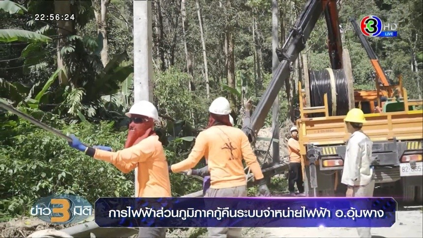 PEA กู้คืนระบบจำหน่ายไฟฟ้า อ.อุ้มผาง หลังดินถล่มเสาไฟหัก 117 ต้น
