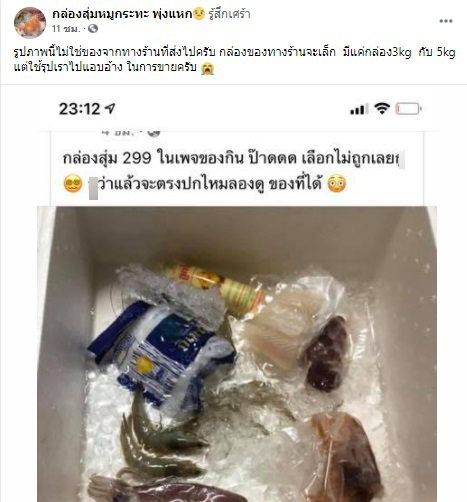 ทำให้ต้นโพสต์ดังกล่าวได้ออกมาชี้แจงเพิ่มเติมว่า “ที่เอามาโพสไม่ใช่ว่าได้ของน้อยแต่เพราะว่าแม่ค้าคนขายนางไม่ได้ใช้รูปสินค้าของตัวเองในการโพสต์ขาย นางใช้รูปของร้านอื่นในการโพสรับออเดอร์ซึ้งไม่ตรงปกกับของที่ได้รับ แล้วก็มีคนอื่นที่สั่งก็ได้เหมือนกัน ไม่ใช่ว่ากล่องสุ่มแล้วเราได้อันนี้แต่คนอื่นได้ดีกว่าแล้วเอามา” จนชาวเน็ตหลายคนเข้าไปคอมเมนต์พร้อมคอยเป็นหูเป็นตาให้กันว่ามีร้านไหนใช้ภาพแอบอ้างหลอกขายในโลกโซเชียลหรือไม่