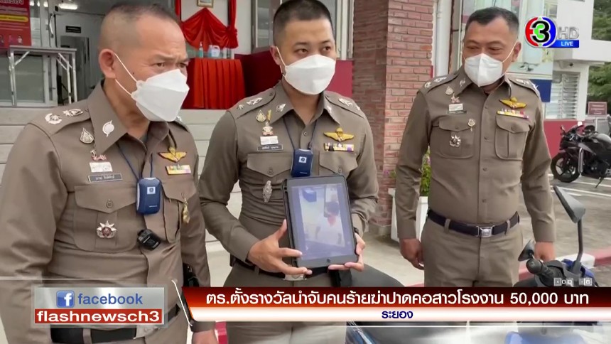 ตำรวจ สภ.หนองกรับ จังหวัดระยอง ประกาศตั้งรางวัลนำจับ 50,000 บาท ชายอายุประมาณ 40 ปี สูง 165 เซนติเมตร มีรอยสักที่ข้อมือ ก่อเหตุฆ่าปาดคอสาวโรงงาน อายุ 23 ปี และชิงจักรยานยนต์ ที่พื้นที่อำเภอบ้านค่าย เมื่อวันที่ 7 กันยายนที่ผ่านมา ล่าสุดพบรถจักรยานยนต์จอดทิ้งไว้ในพื้นที่ตำบลมาบตาพุด ขณะที่คนร้ายยังหลบหนี