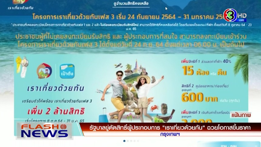 รัฐบาลขู่ตัดสิทธิ์ผู้ประกอบการ 'เราเที่ยวด้วยกัน' ฉวยโอกาสขึ้นราคา