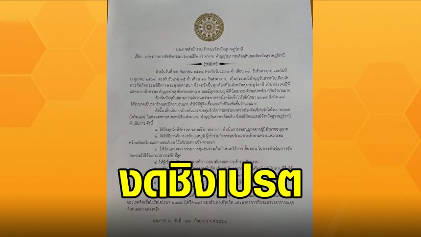 สุราษฎร์ฯเข้มโควิด เจ้าคณะออก 9 มาตรการจัดงานสารทเดือนสิบ งดชิงเปรต