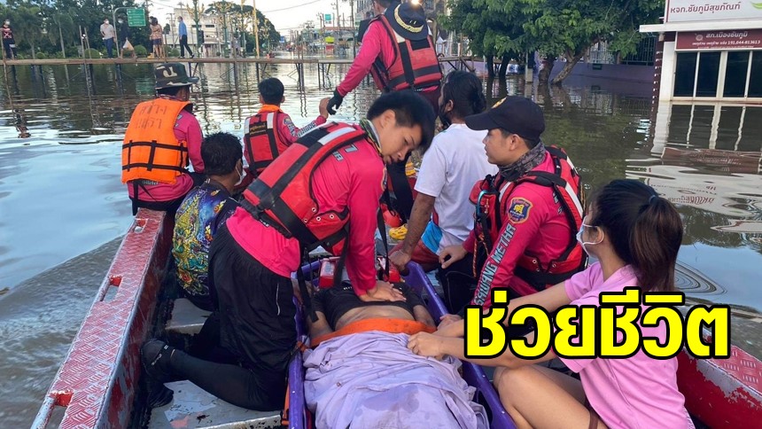 กู้ภัยทำ CPR ช่วยชีวิตชายตกเครื่องบดพลาสติก เจ็บสาหัสบนเรือ ขณะน้ำท่วมสูง