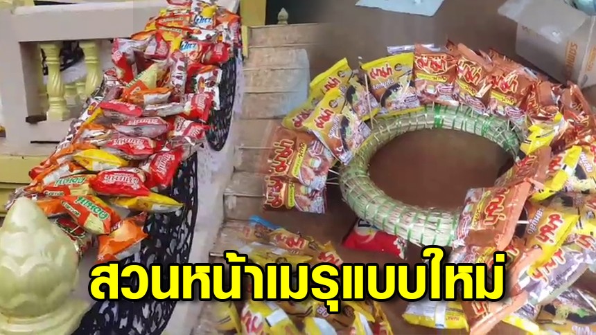 สวนประดับหน้าเมรุแบบใหม่ ปรับใช้เครื่องอุปโภคแทนดอกไม้ ก่อนนำแจกจ่ายช่วยเหลือประชาชน