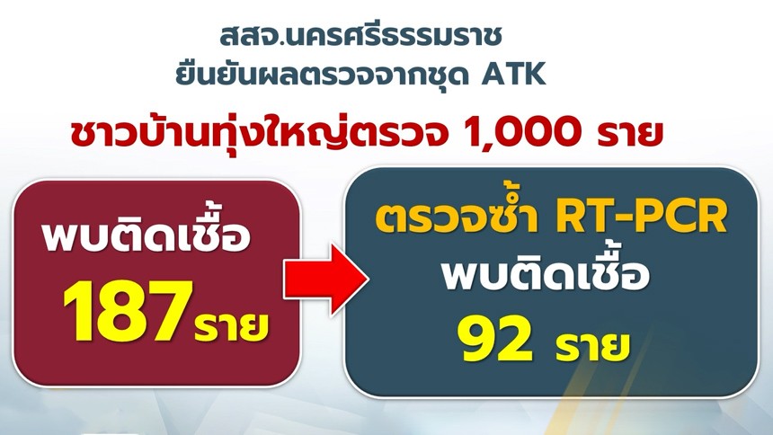 จากการตรวจ ATK ในกลุ่มชาวบ้านที่ทุ่งใหญ่จำนวน 1 พันราย พบระบุติดเชื้อ 187 ราย แต่เมื่อนำเอาเข้าระบบ PCR ยืนยันพบผลบวกแค่ 92 รายเท่านั้น ประมาณครึ่งต่อครึ่ง ดังนั้นหากนำมาเป็นเครื่องมือที่แพทย์ใช้นั้นไม่ได้ผิดวัตถุประสงค์ ผิดไอเท็ม ผิดจรรยาบรรณ เมื่อพูดถึงคำว่าผิดจรรยาบรรณนั้นถือว่าเจ็บปวดมาก ซึ่งขณะนี้ได้สั่งการไปแล้วและมีการยืนยันด้วยวิทยาศาสตร์