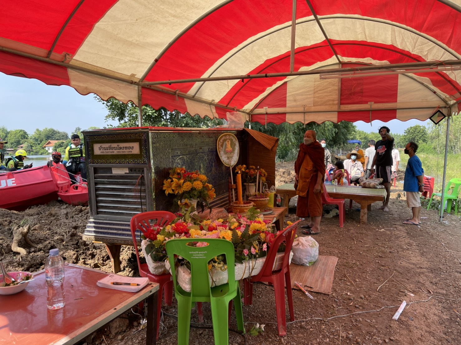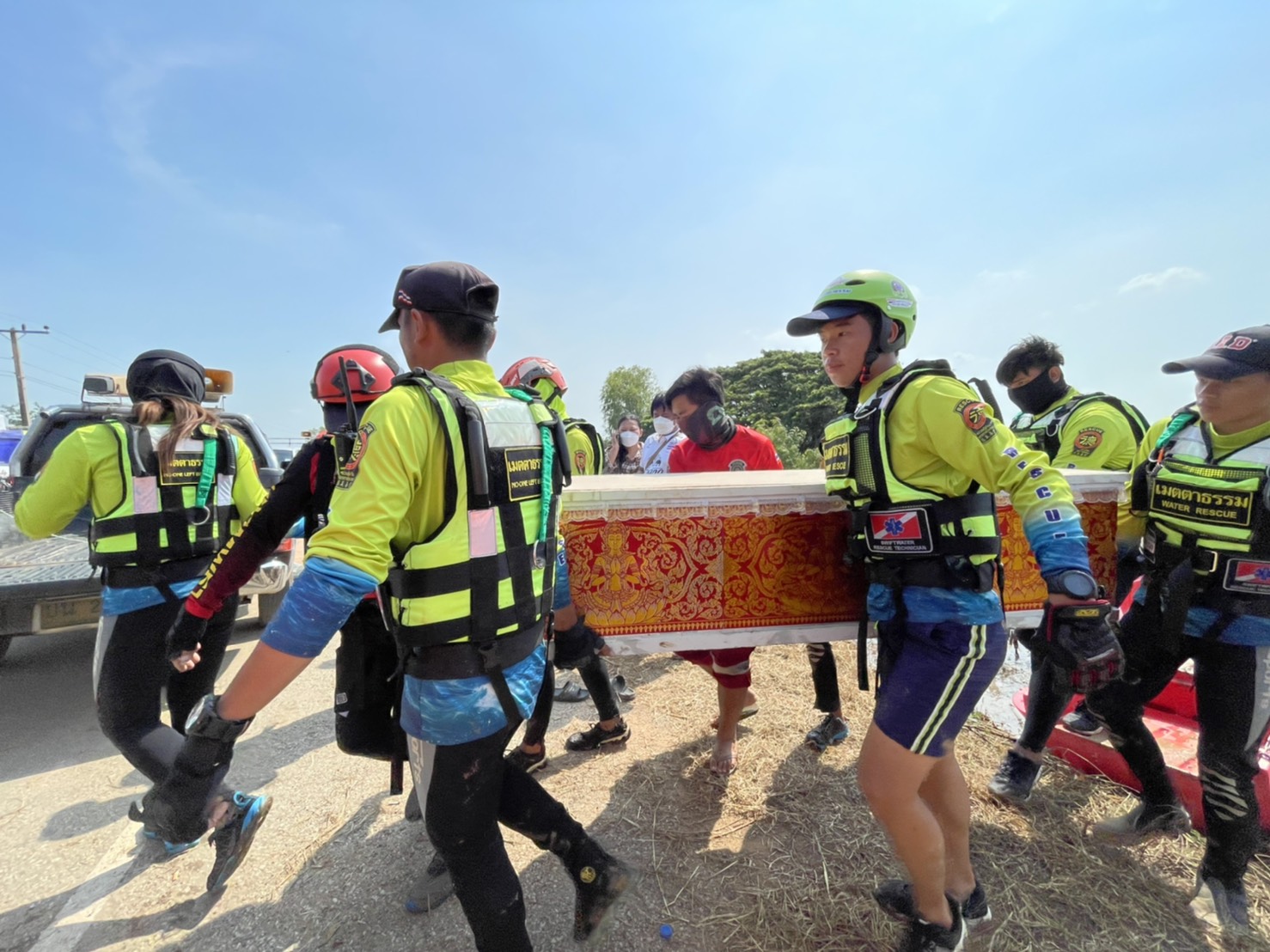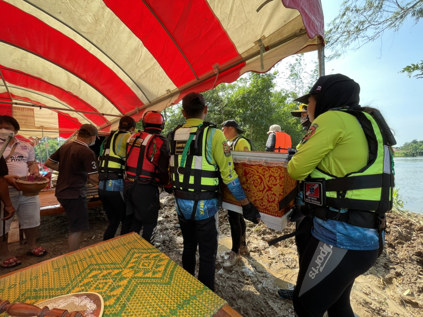 เด็กชายวัย 13 ชวนเพื่อนเดินฝ่ากระแสน้ำออกจากหมู่บ้าน ถูกกระแสน้ำพัดจมน้ำดับ วัดน้ำท่วม ตั้งศพทำพิธีในเต็นท์อพยพ