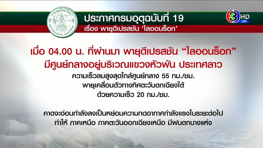 ประกาศกรมอุตุนิยมวิทยา "พายุดีเปรสชัน ไลออนร็อก"