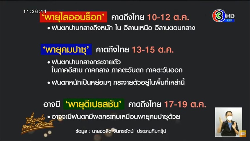 และอาจจะมี พายุดีเปรสชั่น ที่อาจจะมาถึงไทยวันที่ 17-19 ตุลาคม อาจจะมีฝนตกมีผลกระทบเหมือนพายุคมปาซุ ด้วย
