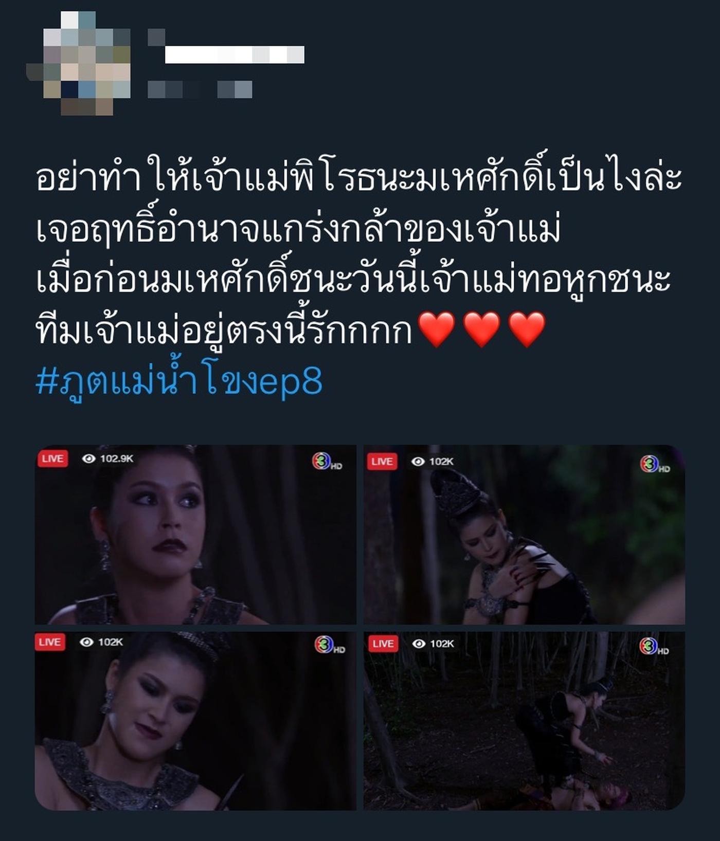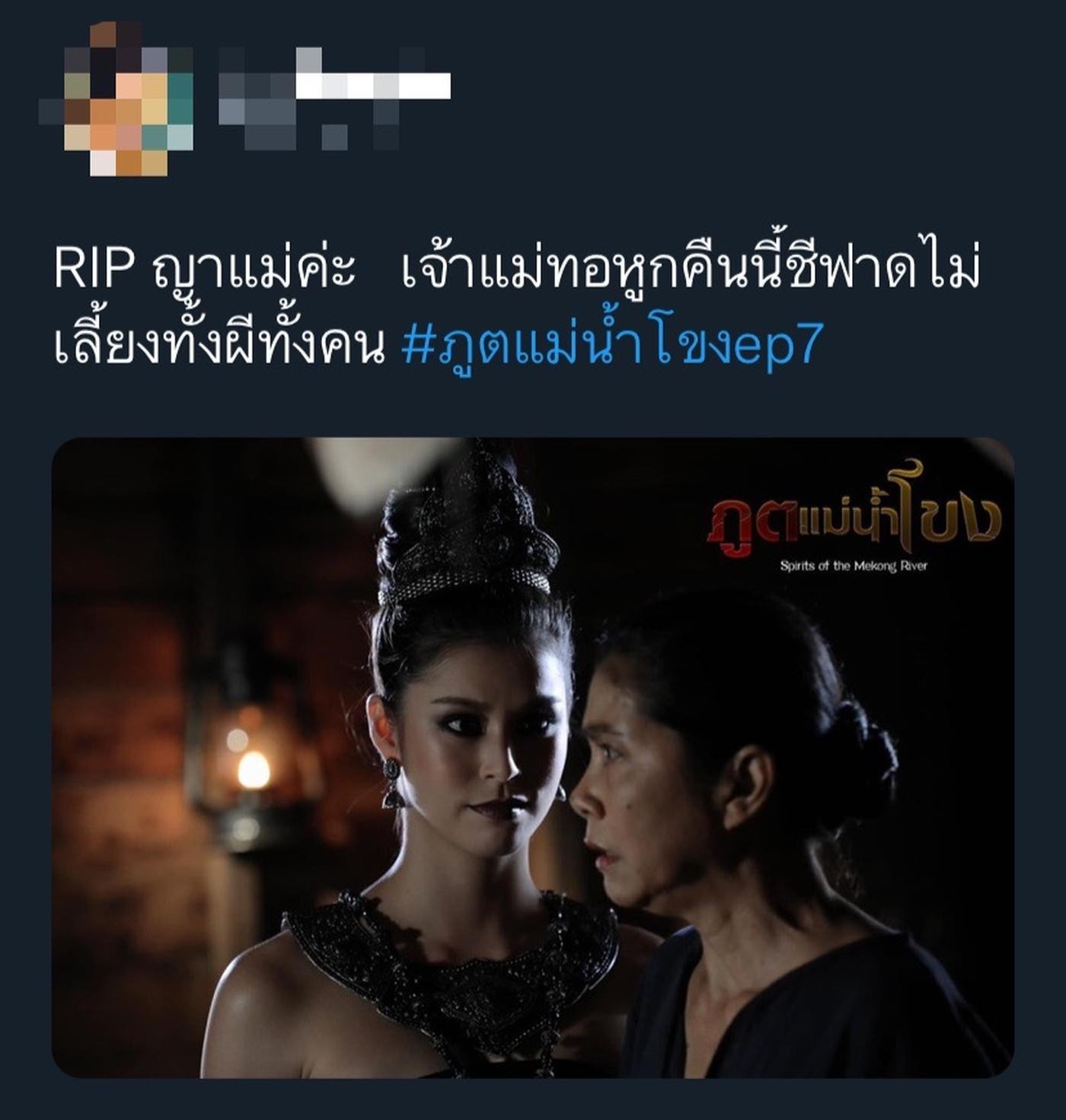 ละคร “ภูตแม่น้ำโขง” ช่อง 3 ล่าสุด EP. 6-8 ส่งภูตผีอาละวาดหนักมาก โดยเฉพาะ เจ้าแม่ทอหูก (ยิหวา ปรียากานต์) หลังจากลงอาบน้ำว่านที่ เขียวค่อม (หน่อย ณัฐนี) จัดเตรียมให้ก็มีฤทธิ์เดชมาก พาบริวาร พญาจัน (แคร์ วงศ์วชิรา) จัดการทั้งคน ทั้งมเหสักข์ และภูตผีที่ขวางหน้า เพื่อแก้แค้นคนที่เคยทำร้ายเธอในอดีตอย่าง บุญเรือน (เจี๊ยบ ปวีณา) กับ บัวผัน (อุ้ม อิษยา) พร้อมกับทวงคืนความรักจาก หมออัคนี (ไม้ วฤธ) เรียกได้ว่าเป็นละครอีกหนึ่งเรื่องที่คนดูพากันแท็กทีมเชียร์ตัวร้ายอย่าง เจ้าแม่ทอหูก เพราะก่อนจะร้าย ในอดีตเธอสู้ชีวิตหนักไม่ไหว โดนสองแม่ลูก ศรีอุษา (เจี๊ยบ ปวีณา) และ แก้วบัวทอง (อุ้ม อิษยา) ทำร้ายและรังแกอย่างโหดเหี้ยม ทำคนดูสงสาร อัญญานางทอหูก มาก แต่แฟน ๆ บางคนก็เสียงแตก เตือน เจ้าแม่ทอหูก เบาได้เบา เพราะเธออาละวาดสั่งพญาจันฆ่า ญาแม่คำแพงเสียชีวิต จนเป็นภาพหลอนติดตาสุด ๆ ต้องชื่นชมสาว “ยิหวา ปรียากานต์” ที่แสดงได้เก่งมาก ทำให้คนดูอินไปกับบทบาท พร้อมปรบมือให้ “กุณกนิช คุ้มครอง” เธอเล่นฉากร่างทรงผีเข้าได้ขลังและดีมาตลอด ไม่มีดรอป ส่วน “แชมป์ ชนาธิป” ถึงในเรื่องจะกลายเป็นบริวารเจ้าแม่ทอหูก ครึ่งคนครึ่งปอบออกอาละวาดกินของดิบไปทั่ว แต่แฟน ๆ ก็ยังกรี๊ดฝีมือการแสดงและหุ่นอันแซ่บหลายของเขา ด้วยความสนุกเหล่านี้ส่งผลให้ #ภูตแม่น้ำโขงep6 และ #ภูตแม่น้ำโขงep7 ติดเทรนด์ทวิตเตอร์ไทยแลนด์