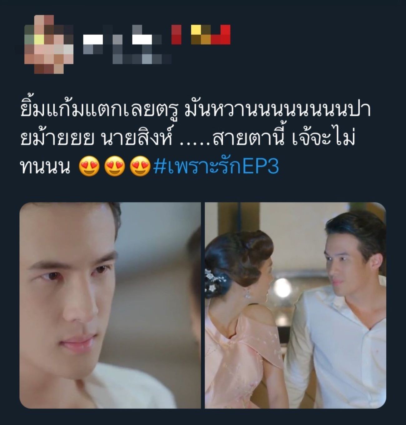งานนี้แฟนละคร “เพราะรัก Because of Love” ต้องห้ามพลาดเด็ดขาด จับตาลุ้นเอาใจช่วย “นายสิงห์” และ “หริ่ง” ในตอนถัดไป “เพราะรัก Because of Love” ทุกวันพุธ-พฤหัสบดี เวลา 20.30 น. ทางช่อง 3 ดูทีวีกด 33 ดูมือถือกด 3Plus และดูย้อนหลังครบทุก EP. รวมถึงไฮไลท์และเบื้องหลังฉากหลุด แบบฟินจัดเต็มได้ที่ https://ch3plus.com/drama/1398