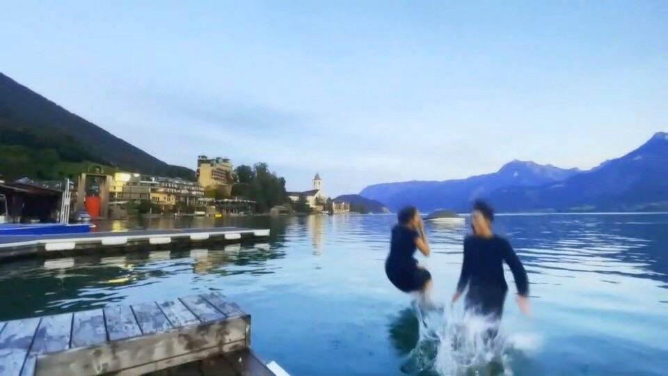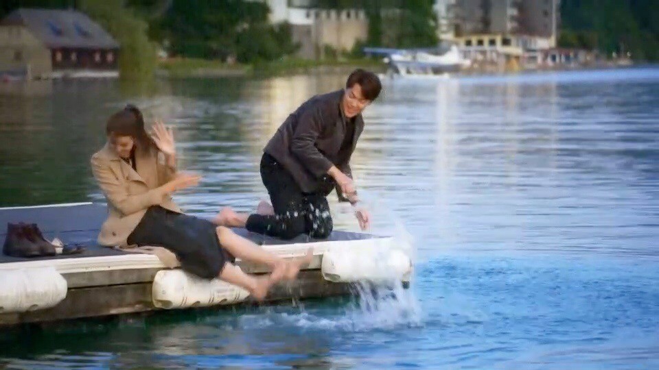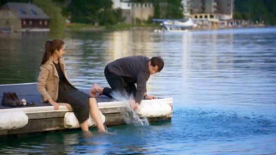 ฉากนี้ถ่ายที่ทะเลสาบในเมืองเซนต์วูล์ฟกัง ประเทศออสเตรีย เป็นทะเลสาบใหญ่ที่สวยงามมาก จริงๆ ในบทแค่นั่งคุยกันเฉยๆ แต่บรรยากาศพาไป ทั้งหมากและโบว์ ขอผู้จัด พี่นก จริยา โดดน้ำเล่น บอกว่าน้ำใสแบบนี้ บรรยากาศแบบนี้ ขอโดดน้ำกระชับความสัมพันธ์ของพระ-นางก็แล้วกัน ทั้งผู้จัดและผู้กำกับอนุญาต ทั้งคู่ก็เลยยิ้มแป้น เดินเครื่องเล่นกันเต็มที่ โดดกันไปสามรอบ แถมวักน้ำสาดใส่กัน จัดเต็มอย่างสนุกและมีความสุขมาก ก่อนจะสวีทกันต่อตรงท่าน้ำ