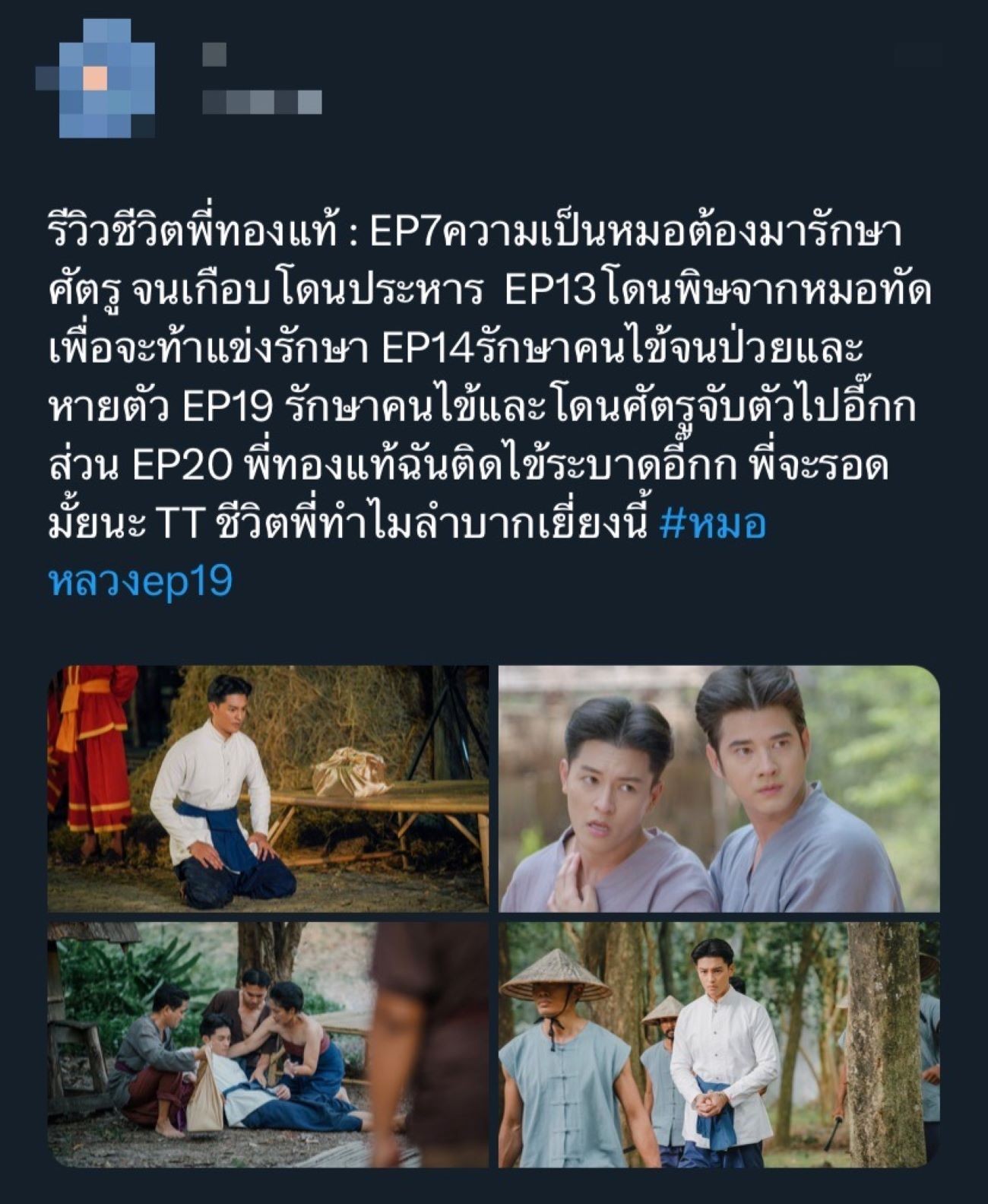 หลายคนตอนนี้หายใจเข้าออกเป็น “หมอหลวง” หมดแล้วจ้า ละครช่อง 3 คุณภาพดีที่คู่ควรขึ้นหิ้งในใจคนทั้งประเทศอย่างแน่นอน เพราะการถ่ายทอดความรู้เรื่องการแพทย์แผนไทยให้รู้จักกันมากขึ้นอย่างที่ไม่เคยพบเห็นในโลกของละครไทยมาก่อน จนได้คำชมจากแฟน ๆ เป็นอย่างมาก โดยเฉพาะเนื้อเรื่องในสองอีพีก่อนโค้งสุดท้าย “หมอหลวง ep. 18-19” ทำเอาคนดูนั่งอินฟินจนไม่กล้าลุกไปเข้าห้องน้ำแม้แต่วินาทีเดียว เพราะต้องคอยส่งแรงเชียร์เหล่าหมอหลวงและนักเรียนหมอที่ออกไปเสี่ยงภัยช่วยเหลือคนเจ็บกลางศึกสงคราม แต่ที่ทำให้แฟน ๆ เอาใจช่วยลุ้นที่สุดคือ หมอทองแท้ (มาสุ จรรยางค์ดีกุล) เพราะมีเรื่องให้เกือบขิตอยู่หลายรอบ ล่าสุดก็ถูกข้าศึกจับตัวไปอีกพ่อคู้ณ แต่ก็รอดกลับมาได้ พ่อทองแท้จะเป็นตายร้ายดีมีชีวิตรอดอยู่จนถึงตอนจบหรือไม่ ทำเอาชาวโซเชียลต้องขอเซฟทองแท้กันสนั่น ในขณะเดียวกันก็เกิดโรคระบาดที่ทำให้ บัว (คิมเบอร์ลี่ แอน โวลเทมัส) ผาด (แพท ณปภา) พระองค์เจ้าพันพิชากร (ปีเตอร์แพน ทัศน์พล) และ แม้นวาด (หลิงหลิง ศิริลักษณ์) ต้องมาช่วยผู้ไข้อีกแรงแทนเหล่านักเรียนหมอ จนในที่สุดความสัมพันธ์ระหว่าง ทองอ้น (มาริโอ้ เมาเร่อ) กับบัวก็เริ่มจะสิ้นสุดทางเพื่อนแล้ว เพราะทองอ้นเร่งสปีดโชว์โมเมนต์หวานๆ แบบไม่ยั้ง ทำเอาคนดูนั่งจิกหมอนมองฟินกันทีเดียว