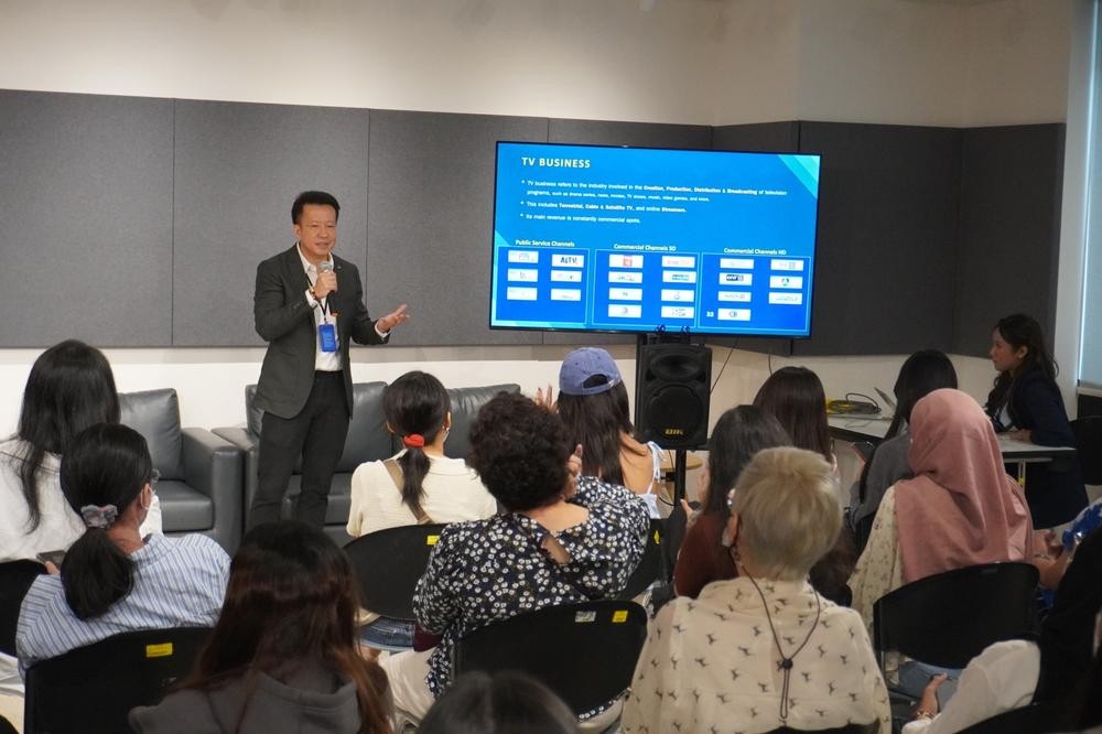 โอกาสนี้ นายชาคริต ดิเรกวัฒนชัย รองกรรมการผู้อำนวยการ สำนักกิจการและสื่อสารองค์กร ให้เกียรติบรรยายพิเศษ ชูประเด็นการบริหารจัดการธุรกิจในอุตสาหกรรมสื่อของกลุ่มบริษัท บีอีซี เวิลด์ การผลิตรายการโทรทัศน์อย่างเท่าทันสถานการณ์ ครอบคลุมทั้งรายการประเภทข่าวและบันเทิงบนแพลตฟอร์มต่างๆ การผลิตคอนเทนต์ที่ตอบโจทย์ในทุกๆ มิติ ตลอดจนการนำเทคโนโลยีสมัยใหม่เข้ามาพัฒนาในกระบวนการผลิต สามารถรองรับการปฏิบัติงานในยุคปัจจุบัน