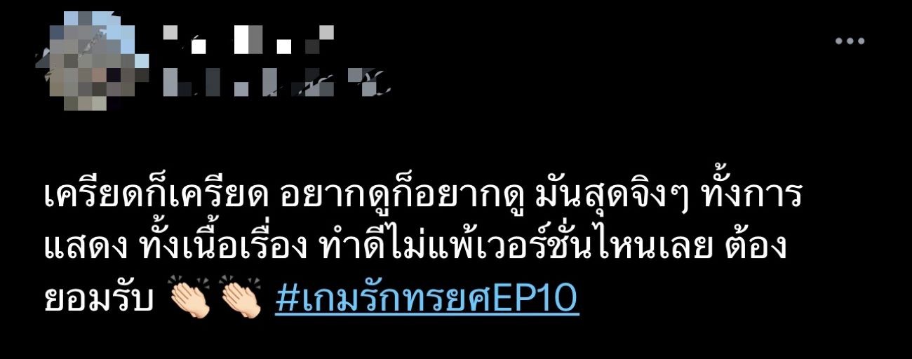พายุฝนฟ้าคะนองที่ว่าแรงก็ไม่เท่าความร้อนแรงของตัวพ่อตัวแม่ “แอน-อนันดา” เปิดศึกแย่งลูกสุดเดือด ทำคนดูทึ่งทุกการแสดง ใน “เกมรักทรยศ” ช่อง 3 อีพี 10 เรียกว่าพีคทุกฉากจนหายใจหายคอแทบไม่ทัน MVP ทุกฉาก ยิ่งล่าสุดที่ทำคนดูอินจัดคงไม่พ้นฉาก หมอเจน (แอน ทองประสม) แฉเมียน้อยอย่าง เคท (แพทริเซีย ธัญชนก กู๊ด) กลางโต๊ะอาหารต่อหน้าพ่อแม่ของเคท แบบโนสนโนแคร์ จนเคทของขึ้นตบหมอเจนหัวควํ่า ฟาก อธิน (อนันดา เอเวอริงแฮม) ก็โมโหเลือดขึ้นหน้า สาดอารมณ์ใส่หมอเจนไม่ยั้ง จนคนดูแทบอยากจะกระโดดเข้าไปในจอพร้อมสู้ข้างหมอเจน และในเมื่อผัวเมียต้องแตกหักขั้นนี้ ก็มาถึงคิวเดินเกมเปิดศึกแย่งลูก พัชร์ (แม็ค ณัฐพัชร์) และ พลอย (มากิ มาชิดา) จุดนี้แหละที่ทำเอาคนดูละสายตาตามอ่านเกมของหมอเจนกับอธินแทบไม่ทัน เพราะทั้งคู่ใส่อารมณ์เดือดกันไม่ยั้ง ทุกคนต่างชื่นชม “แอน-อนันดา” ไม่ขาดสาย การแสดงชั้นครูสมกับเป็นตัวพ่อตัวแม่ของวงการบันเทิงไทยจริง ๆ ใครก็โค่นบัลลังก์ไม่ได้ ดัน #เกมรักทรยศEP10 ติดเทรนด์ x อันดับ 1
