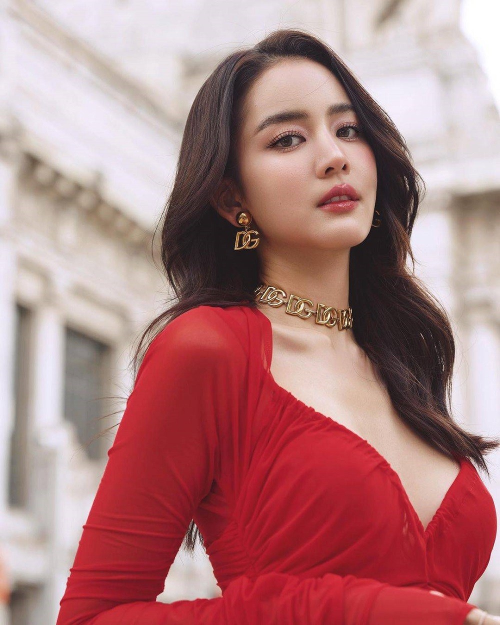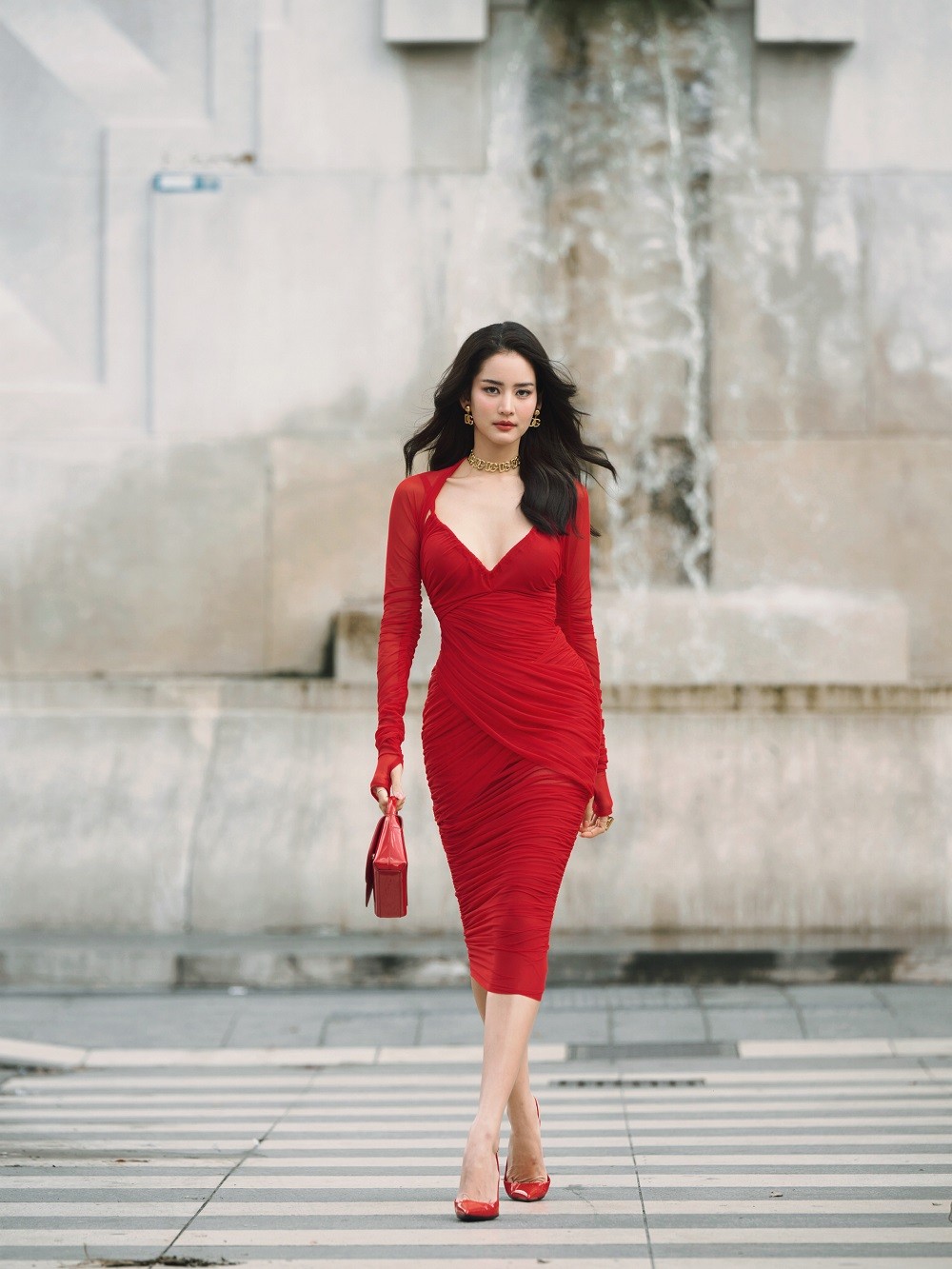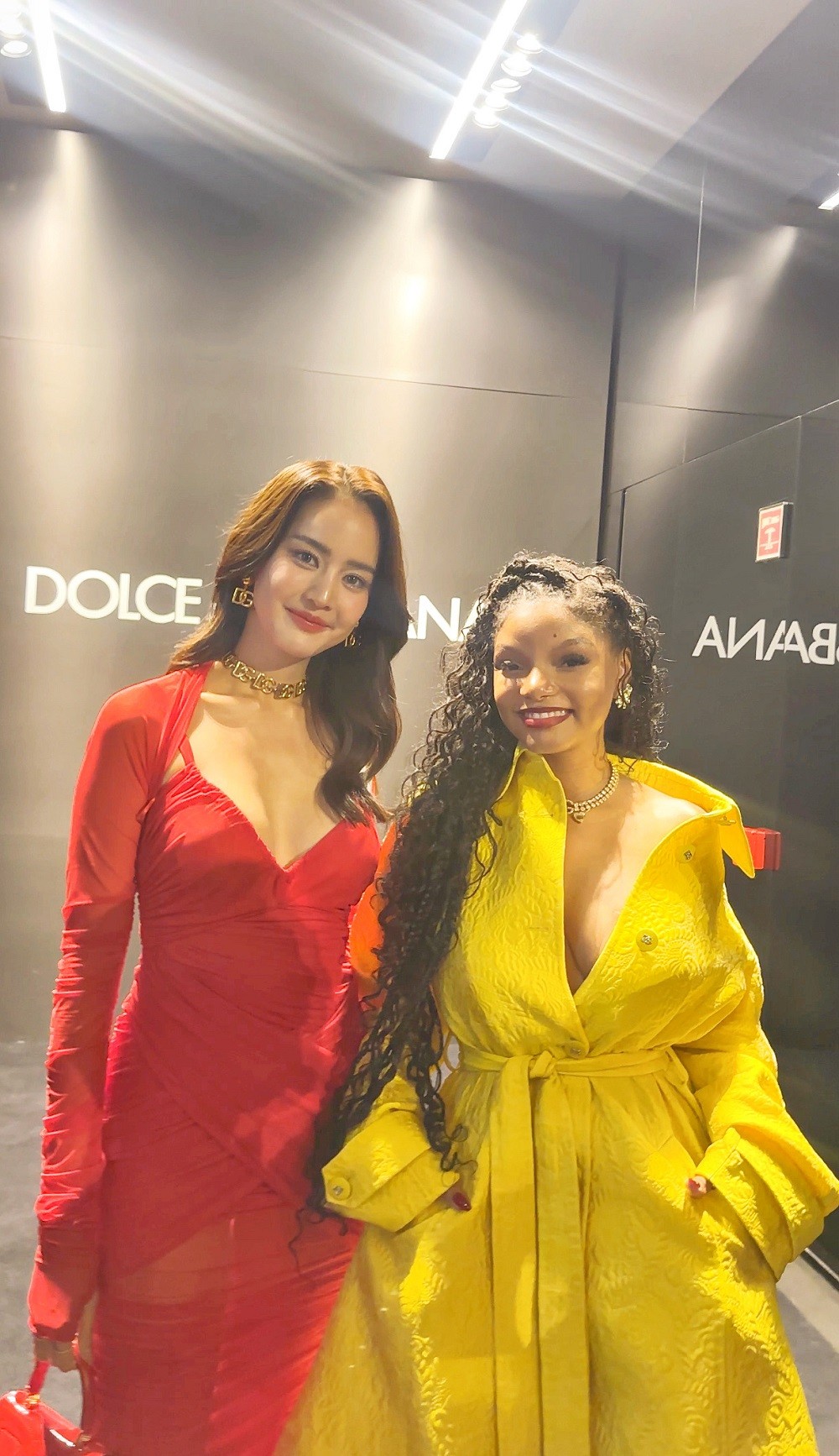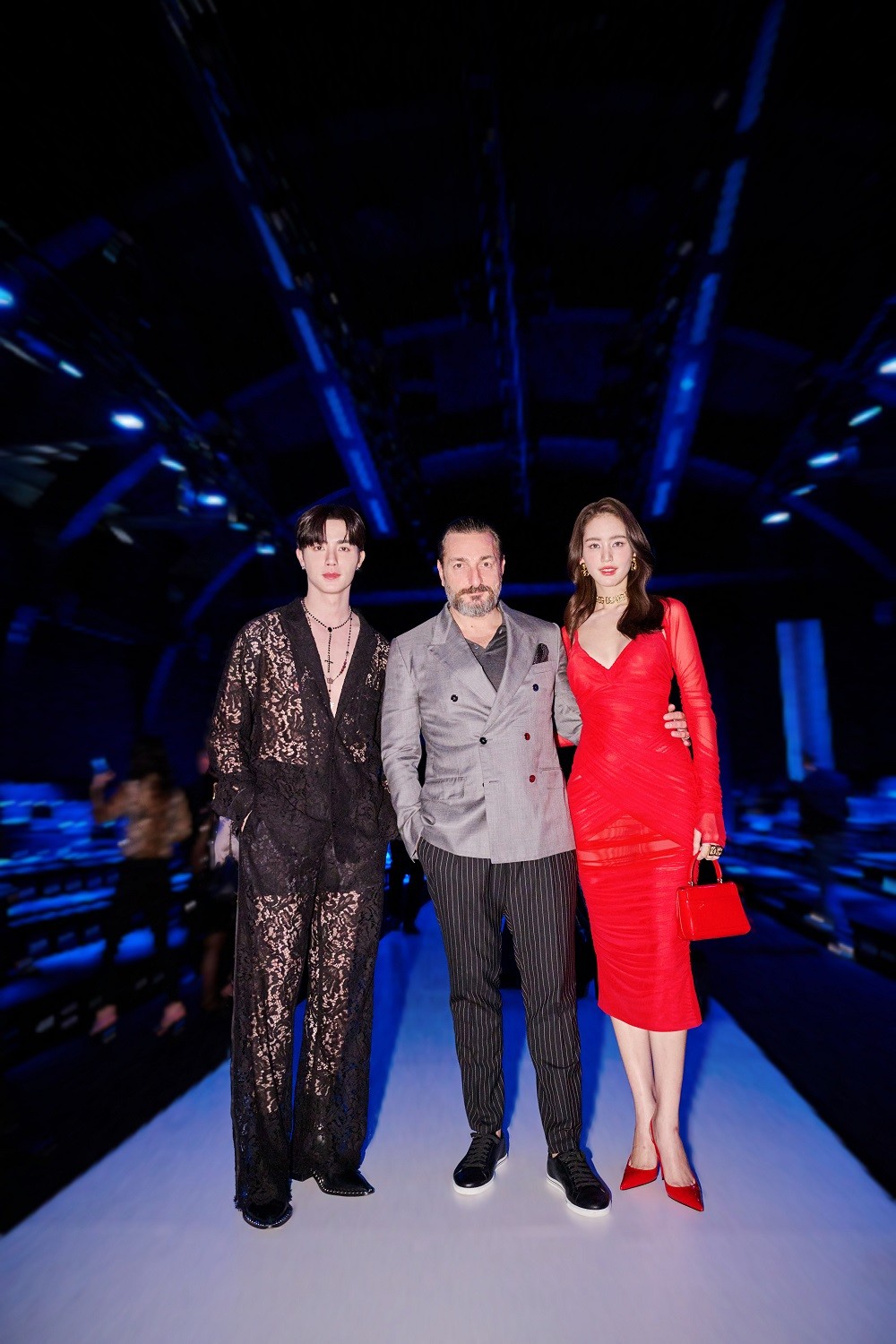 สาว “โบว์ เมลดา” มาในลุคซิกเนเจอร์ของแบรนด์ด้วยกระโปรงสีแดงเข้ารูป โชว์หุ่นปัง สุดโดดเด่น พร้อมจิวเวลรี่โลโก้ DG ทั้งสร้อยคอ ต่างหู ที่แมตช์กับลุคให้ดูหรูหราสะดุดตาทุกคนที่พบเห็น แฟชั่นโชว์ครั้งนี้ตัวแทนคนไทยนอกจากสาวโบว์แล้ว ยังมี ซี พฤกษ์ และยังได้กระทบไหล่เซเลบริตี้คนดัง